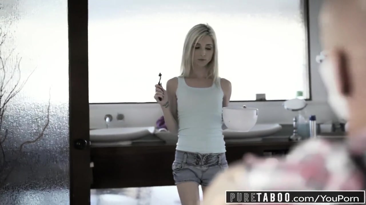 Бритоголовый мужик жестко ебет худенькую светловолосую девку