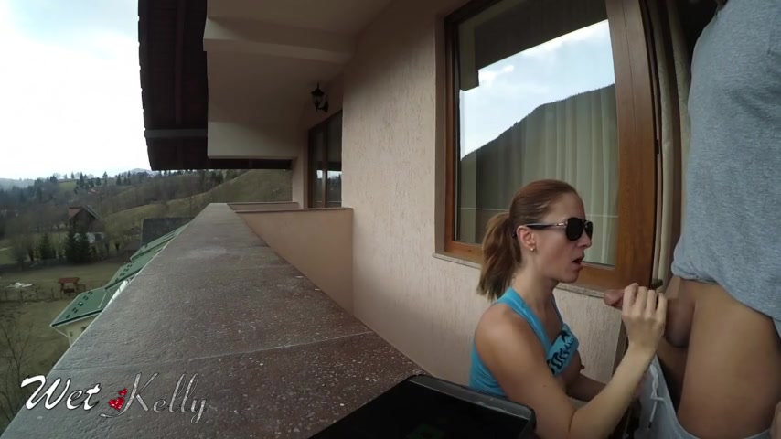 «Рыжеволосая сучка с роскошными сиськами, находясь с парнем на балконе, сильно захотела сделать ему очень приятно. Зная на сколько сильно он любит оральное удовольствие, страстная бестия стала на коленки, и смачно застрочила очень классный минет, заглатывая длинный мужской конец по самые яйца. Довольный парнишка оценила старания подруги, и как только она вынула болт из глотки, чувак охотно поставил ее раком, и максимально глубоко ввел пенис в девичью киску, наслаждаясь сладкими стонами любимой на протяжении всей их ебли.»