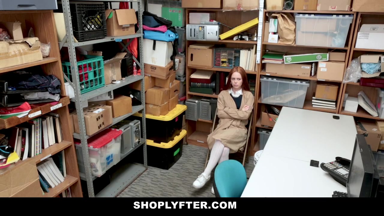 «Рыжеволосая девушка попалась на краже опытному охраннику, который затащив малышку в подсобное помещение, стал пугать красавицу уголовной ответственностью. Увидев как няшная краля сильно напугалась, он сделал ей другой предложение, загладить вину совместным сексом. Данное занятие пришлось ей по вкусу, и как только пульсирующий пенис оказался возле ее мордашки, она немедленно ухватилась за него рабочими губами, демонстрируя счастливчику восхитительные познания в данной прелюдии. На этом жеребец не остановился, и устроил девичьему влагалищу зачетную взбучку.»