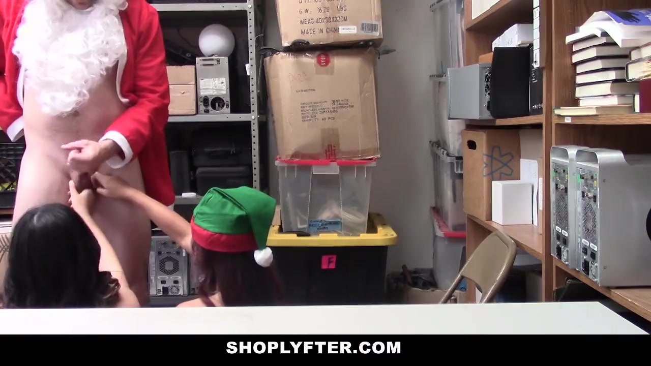 «Сотрудник фирмы в костюме Деда Мороза затащил в подсобку двух молоденьких сучек, которых сразу стал всячески окучивать. После непродолжительного флирта, симпатичные мокрощелки не стали отказаться от приятного времяпровождения, особенно когда увидели на сколько у мужика большой хуй. Обнажившиеся сучки дружно стали перед мужиком раком, с нетерпением ожидая когда увесистый детородный орган ловеласа обуздает их волосатые дырки. Проявив не малую выдержку, неугомонный ловелас обеспечил малышек ни с чем не сравнимым удовольствием, в завершении которого они получили смачный камшот.»