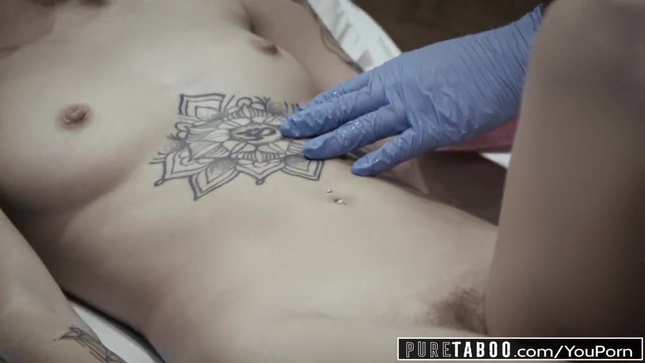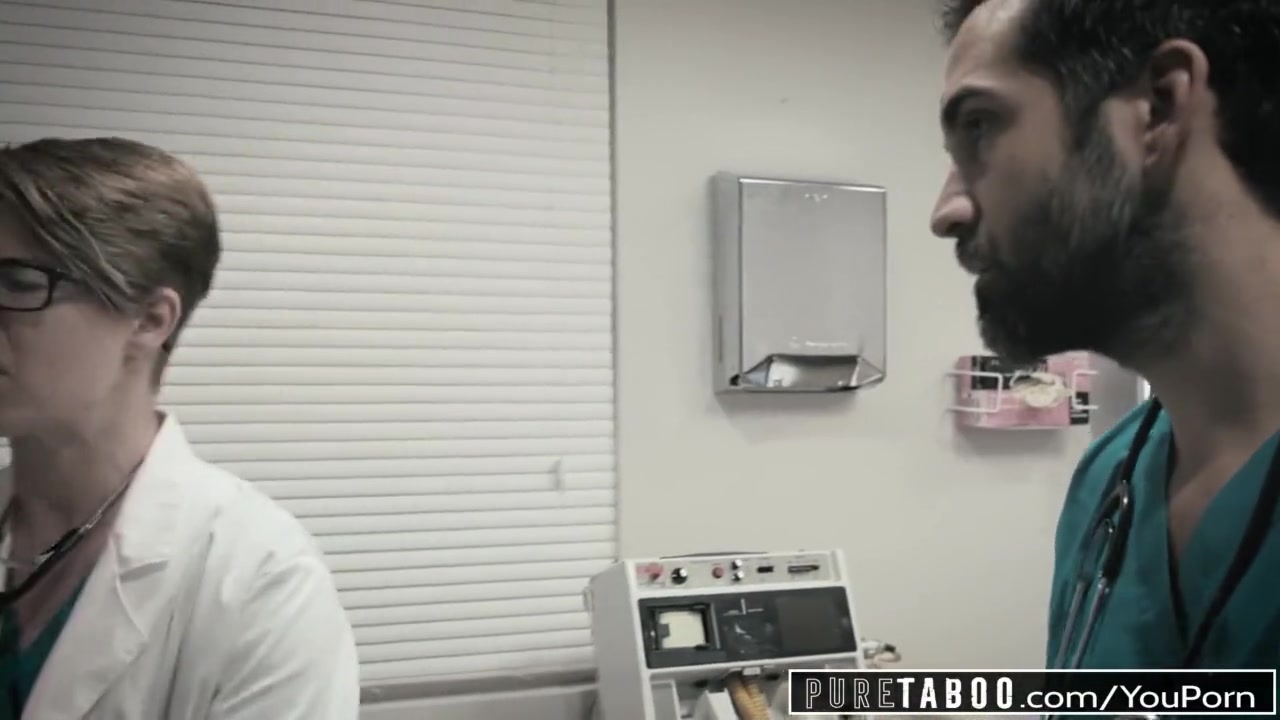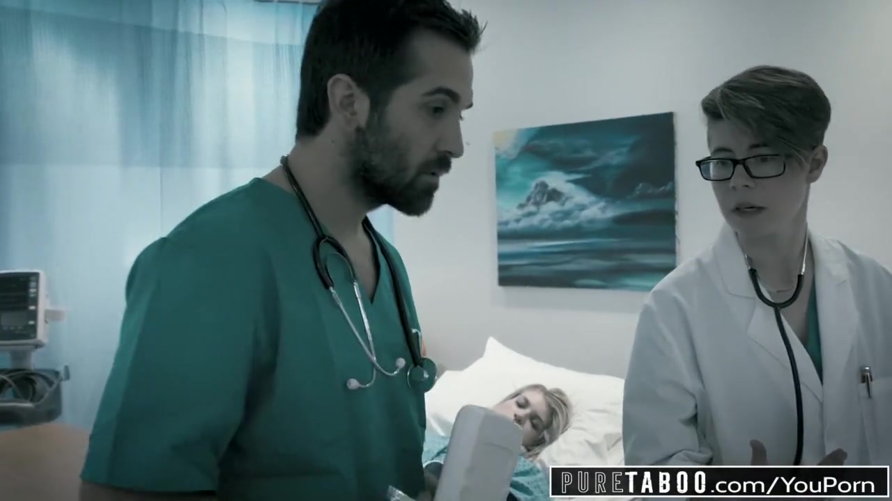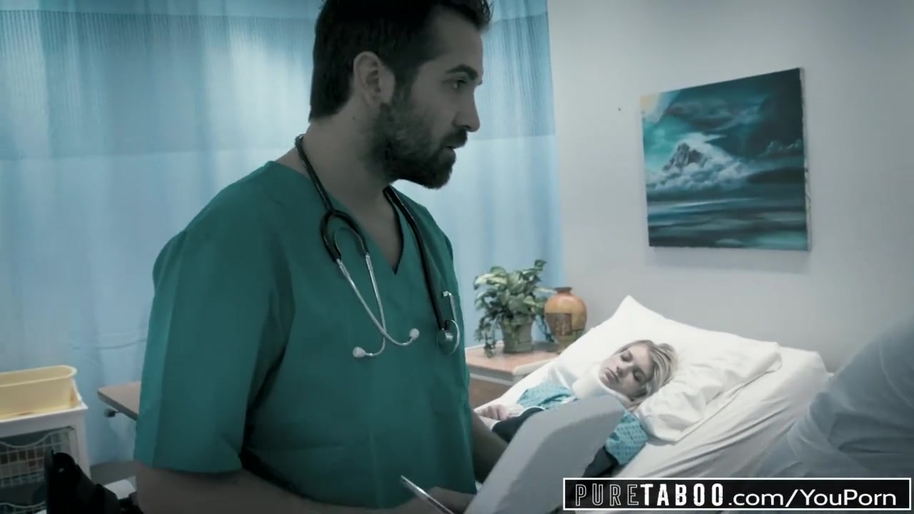 «Привлекательная блондинка безумно понравилась похотливому доктору, который сразу решил сделать тщательное обследование роскошной пациентки в обнаженном виде. Обработав незначительные ушибы от падения на ее ножках, чувак поднялся выше и нежно пощупал пальцами девичий клитор. Увидев как сильно ей это понравилось, ловелас охотно воспользовался сложившейся ситуацией, стянув с себя штаны и медленно вогнав детородный орган красавице в лоно. Белокурая цыпочка послушно дала себя трахать во всех позах которые в которых захотел врач, с удовольствием ощущая стремительное приближение оргазма.»