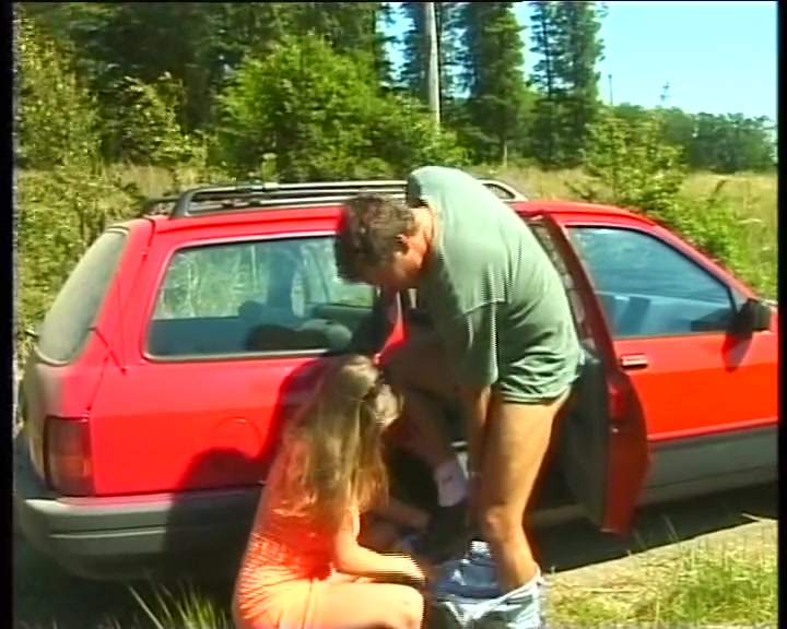 «Блондинка за рулем – это очень опасно. Парню, который шел по дороге, это очень хорошо известно. Он нормально себя чувствовал, пока его не сбила телка в красной машине. Правда девчонка очень сильно перепугалась и затащила молодого человека в тачку, чтобы отвезти его в больницу. Когда парень очнулся, машина была уже далеко в лесу и девица придумала оказать первую помощь пострадавшему. Правда, она поступила, как истинная блондинка – расстегнула ширинку и начала сосать член. Парню сразу же стало полегче и он с удовольствием воспользовался такой медициной. Да еще и натянул красотку на свой член ко всеобщему удовольствию.»