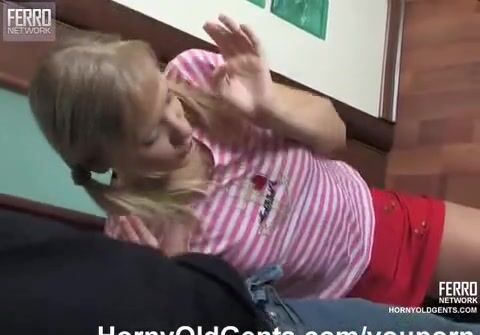 «Русский мужик подсмотрел за белокурой дочкой в туалете. Он увидел её без трусиков и возбудился, писала стройная крошка с хвостиками очень уж игриво. Короче говоря, самец насколько сильно завелся, что даже на инцест решился. Уломать дочурку на еблю было не просто, она сопротивлялась, но всё-таки взяла хер в ротик. Стройная милашка с маленькими сиськами отсосала хер отца и насладилась вагинальным сексом.»