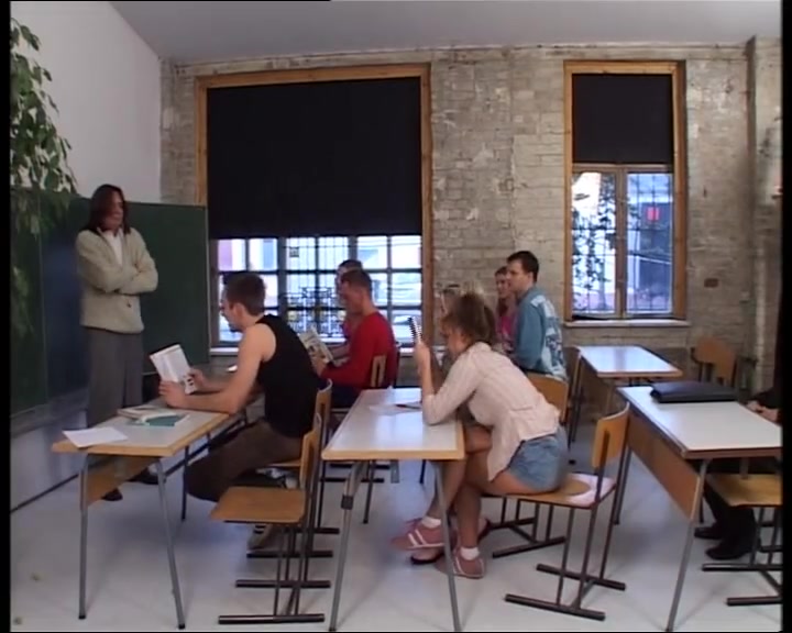 «Говорят, что в Германии отличное образования. Может быть, но эта школа выглядит уж больно задрипанной. Но в данном случае это неважно, потому что в нашем классе учатся потрясающие телочки, которые украсят собой даже самую обшарпанную обстановку. Именно это и отметил новый учитель, когда попытался было рассказать своим ученикам хоть что-нибудь. Девки на его слова стали вываливать сиськи, а их одноклассники ничем другим, кроме облапывания этих сочных малышек, заниматься не хотят. Ну что же, придется и дальше мучиться, вот только две крошки отлучились в туалет. Но не для того, чтобы пописать, а для того, чтобы устроить там небольшие лесбийские забавы. Вскоре к ним присоединился одноклассник, который тоже хочет поучаствовать в этом приятном перерыве на секс. Первым делом он засадил в ротик одной дикой штучке, а затем натянул ее на член так, что крошка буквально обкончалась от удовольствия.»