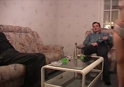 Телка выпивает с мужиками и занимается с ними сексом втроем