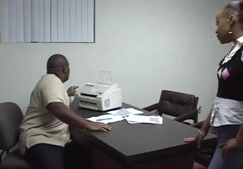 «Большой негр на собеседовании разводит на интим привлекательную негритянку, у которой совершенно нет рабочего опыта, ведь она только с института. Мужик обещает устроить цыпочку, но только после секса, поэтому та соглашается. Хуй у мужлана оказывается довольно большим. Сперва молоденькая проказница делает ему минет, а потом отдается в пизду раком на столе, приспуская трусы. Чел ещё и сперму слил на её лицо.»