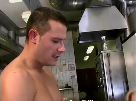 «Повар на кухне берется жестко наказывать старую уборщицу после смены. Та не справлялась с работой, вот парень и решил её проучить. Зрелая потаскуха с удовольствием выполнила его приказы, похоже, что для неё это совсем не наказание. Извращенец сперва увлажнил её пизду майонезом и кетчупом, а потом принялся жарить бабульку в глотку и в пизду. Он заставил её ещё и сковородку вылизывать, таким образом доминируя над ней.»